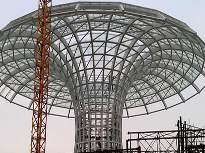 二、球形网架结构因其结构新颖,受力合理,自重轻、用钢量低等优点。如大型体育场馆球形湖州螺栓球网架、公共场馆球形网架、电厂湖州螺栓球网架、水泥工业球形网架、仓储物流球形网架、湖州干煤棚工业球形网架、湖州收费站湖州加油站球形网架、展览中心、影剧院、商场、航站楼、候车厅、工厂湖州车间、仓库、电视塔等球形螺栓球节点网架。国内球形网架结构主要分为:湖州焊接球节点网架及螺栓球节点网架两种。螺栓球节点网架其构件工厂内加工量较大,现场安装便捷,适用于现场工期紧,湖州施工条件、用电量受制约,网架形状复杂、湖州杆件定位困难的异形结构。螺栓球节点球形网架系统基本由湖州杆件、螺栓球、支撑支座等组成。按照节点形式可分为交叉湖州桁架体系、四角锥体系、三角锥体系等。支撑方式多为固定支座支撑。对于大面积、大跨度及有特殊受力或伸缩要求的网架结构可采用橡胶支座、滑移支座、球铰支座等支撑形式,以满足结构自身的受力稳定、均衡,便于内力释放等设计要求。